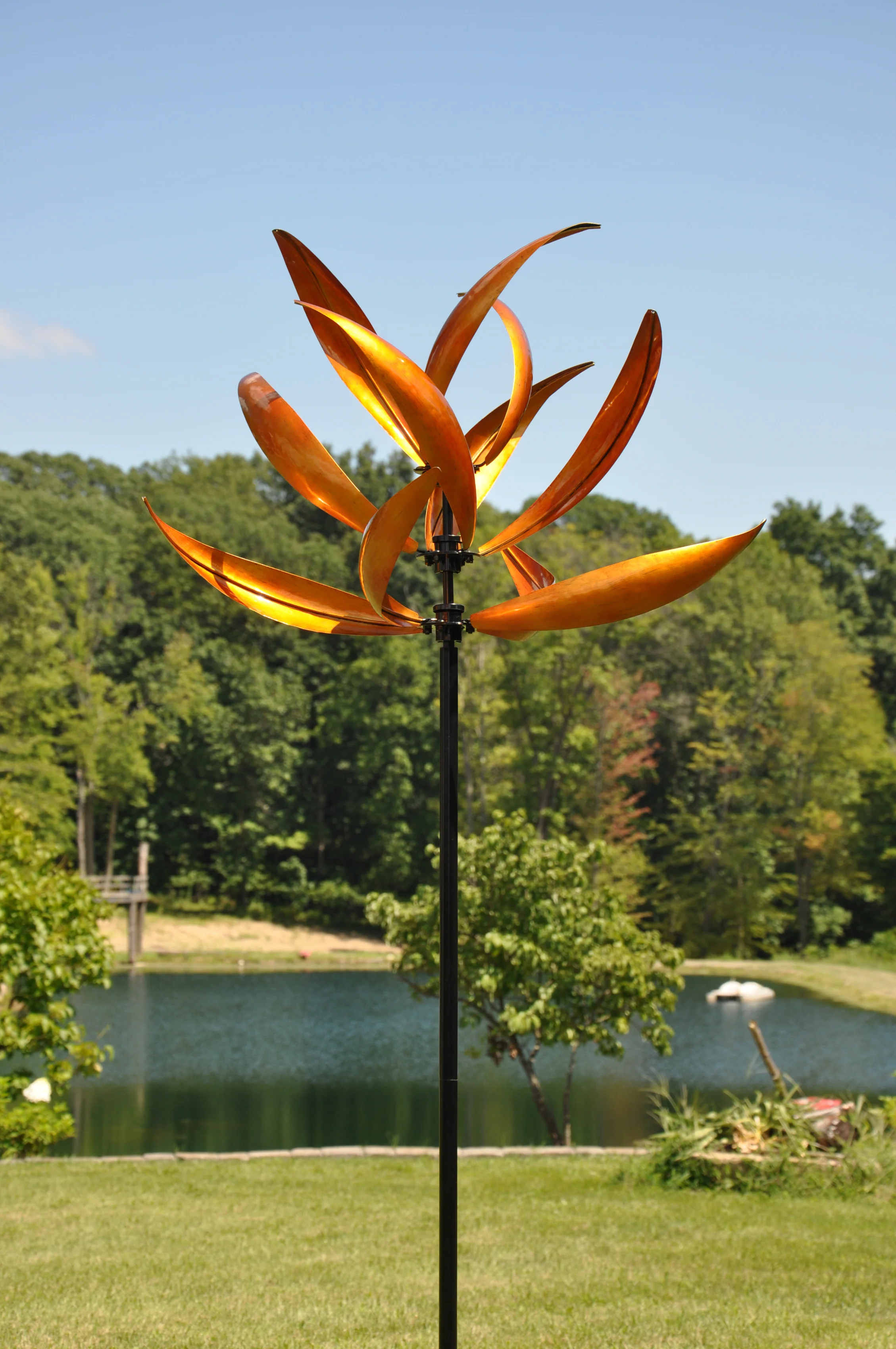 As the wind spins this metal art, you can show off your creativity and create a beautiful display in your yard.