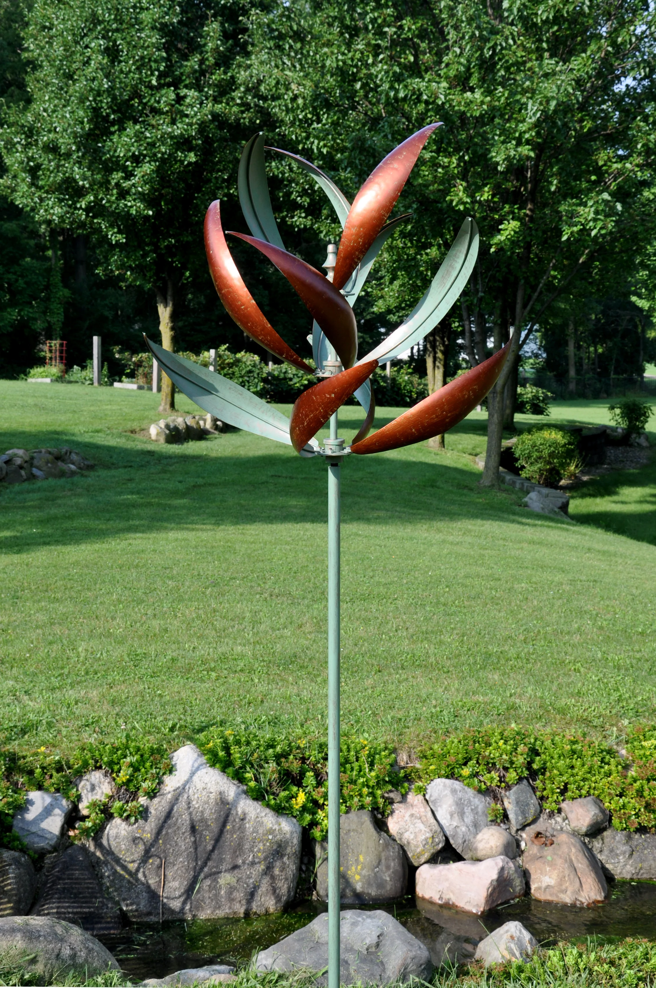 As the wind spins this metal art, you can show off your creativity and create a beautiful display in your yard.
