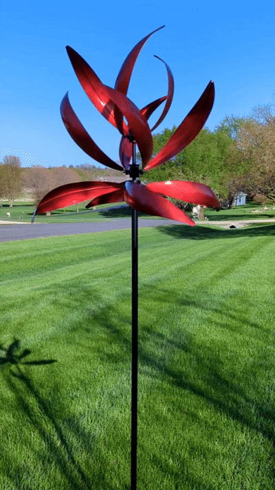 As the wind spins this metal art, you can show off your creativity and create a beautiful display in your yard.