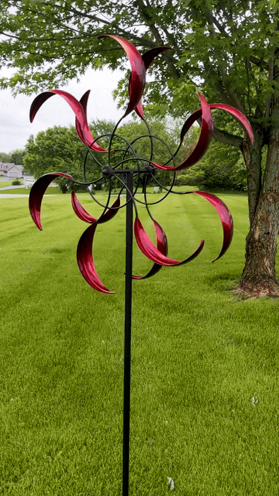Lovely Red Finish 】Add a touch of color and elegance to your garden with this metal wind spinner that has a lovely red finish that shines in the sun.
